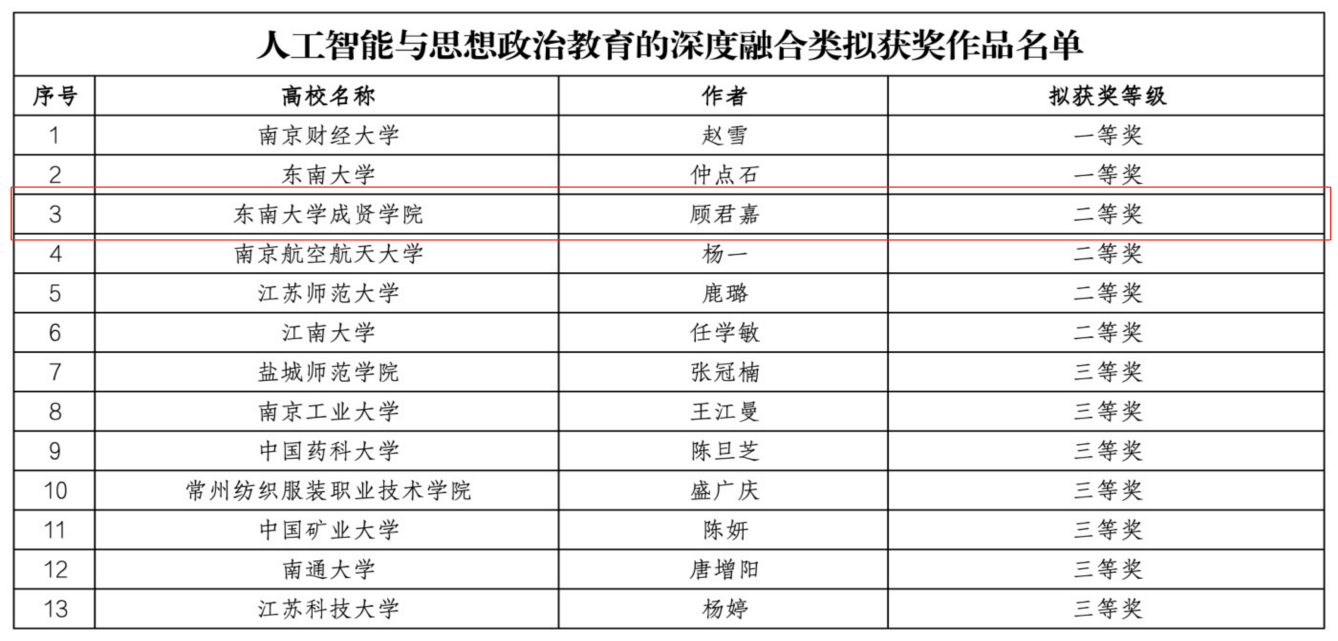 近日,江苏省高校网络思想政治工作中心和高校易班发展中心组织开展的2025年度江苏高校思政“金微课”征集遴选活动结果公布。我校建筑与艺术设计学院辅导员顾君嘉老师的作品《驭AI之力,传千年之文----新青年的文化强国使命》脱颖而出,荣获二等奖。