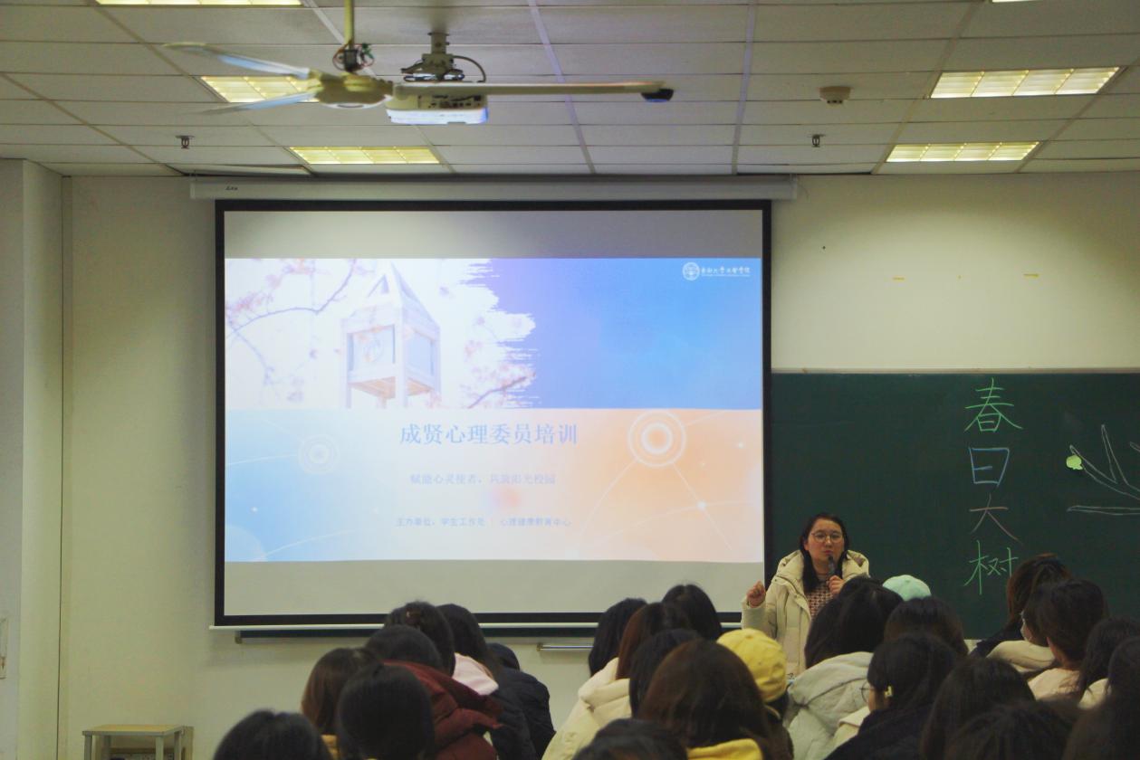 东南大学成贤学院心理健康教育中心在电工电子大楼122室召开了2022级心理委员培训会。本次培训由心理健康教育中心段亚宁老师主讲,各班级心理委员齐聚一堂,共同学习心理健康知识,提升专业工作技能。