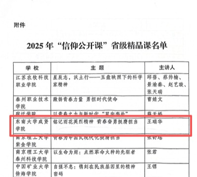 近日,共青团江苏省委员会公布了2025年“信仰公开课”省级精品课征集结果,我校辅导员王瑞华主讲的《铭记雨花英烈精神 青春奋勇挺膺担当》成功入选。