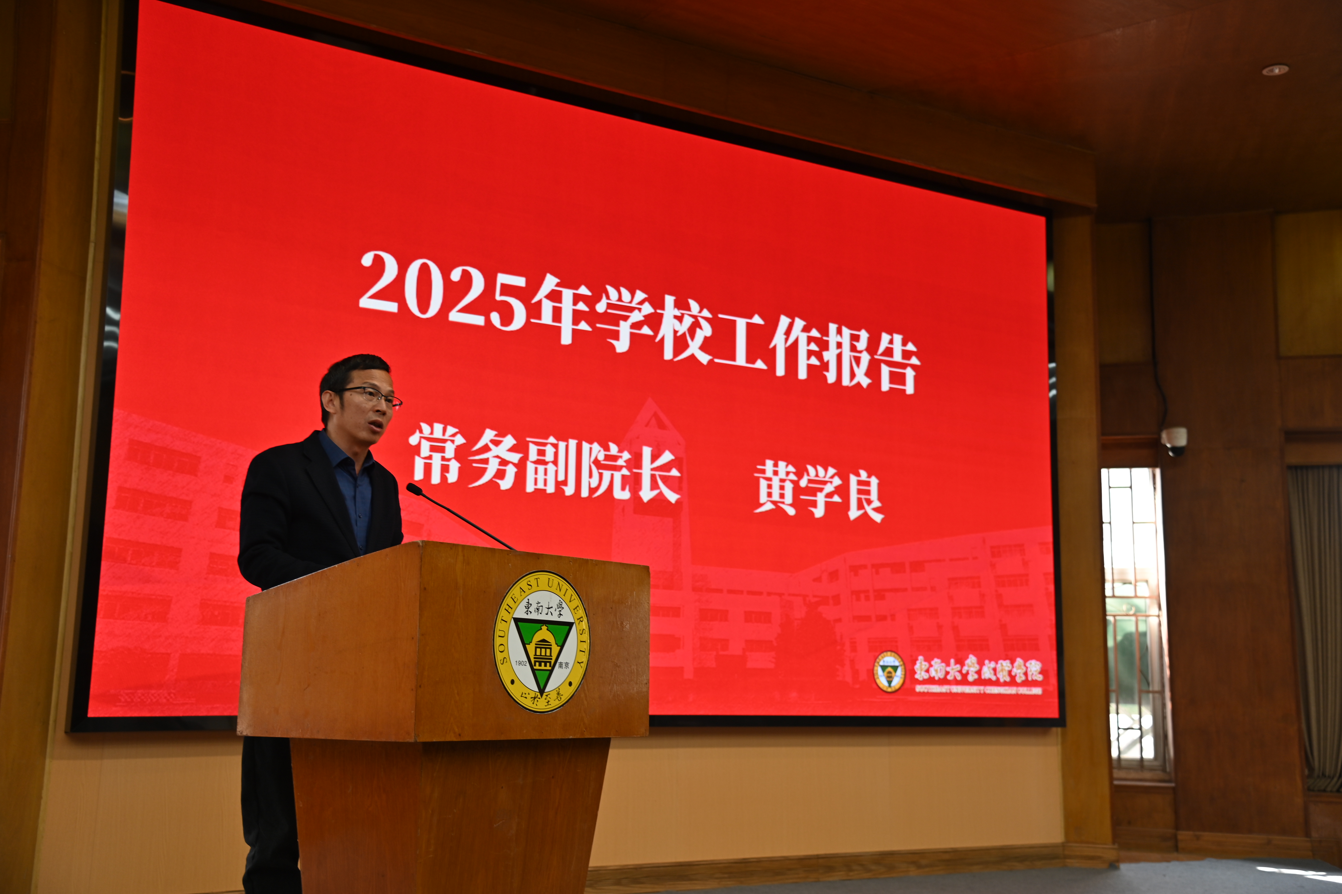 黄学良常务副院长在报告中强调,2026年是“十五五”规划的开局之年,学校将紧扣建设特色鲜明的高水平应用型大学这一奋斗目标,聚焦立德树人、人才强校、数智转型、专业优化、科研创新、安全稳定和综合治理等七大重点任务,持续深化综合改革,着力提升办学内涵,统筹推进教育、科技、人才一体化发展,争创江苏省优质特色应用型本科高校。他希望全体成贤人在新的一年里,锚定目标、守正创新、真抓实干,以高质量发展的实际成效服务教育强国建设和区域经济发展,奋力谱写成贤学院转型跃升新篇章。