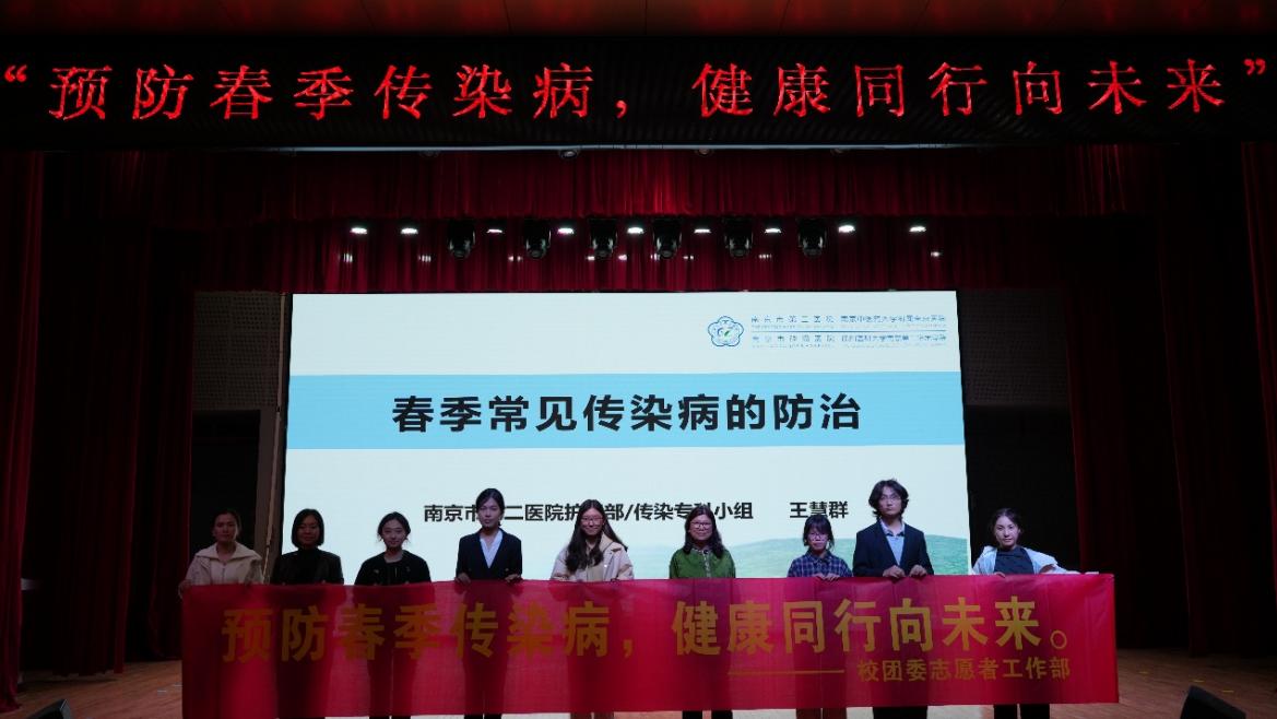 春季是呼吸道、肠道传染病高发期,为筑牢校园健康安全防线,保障师生身体健康与校园稳定,4月8日晚,校团委特邀南京市第二医院汤山院区感染科科护士长王慧群,在大学生活动中心313报告厅开展“预防春季传染病,健康同行向未来”主题讲座。全校530余名师生聆听讲座。