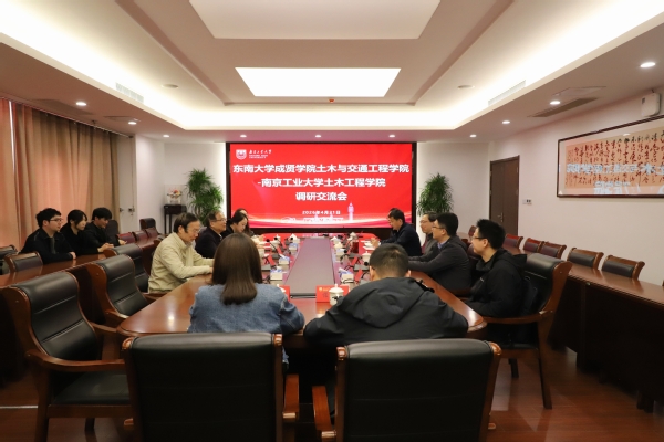 随后,郭正兴院长介绍了我校土木与交通工程学院的办学历史与专业设置,高度评价了南工大土木工程学院的建设成效,并表示希望以此次调研为契机,学习南工大在学科建设与研究生培养方面的先进经验,进一步明确未来合作方向。党总支书记杨阳表示南工大土木工程学院学科特色优势显著、人才培育成效突出,是成贤学院众多学子向往的“梦中情校”,此次来访既是对双方长期合作成果的见证,也为未来协同育人奠定了坚实基础。