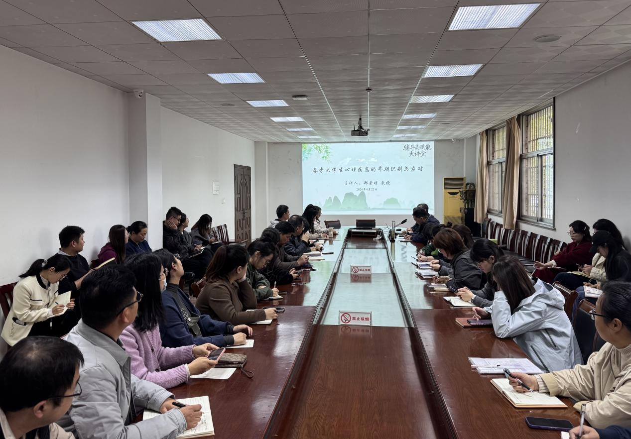 为深入落实“健康第一”教育理念,全面提升学生工作队伍心理健康教育与危机干预专业能力,4月22日上午,我校2026年第二期辅导员赋能大讲堂在真知馆105会议室顺利开讲。本次培训聚焦春季大学生心理疾患早期识别与应对,特邀江苏健康研究院心理健康教育研究中心主任、南医大附属一附院临床心理科执行主任郑爱明教授主讲,学生处相关工作负责同志及全体辅导员参加培训。