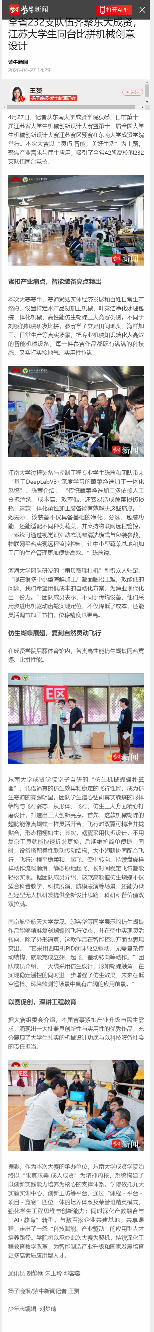 【扬子晚报 紫牛新闻】全省232支队伍齐聚东大成贤,江苏大学生同台比拼机械创意设计