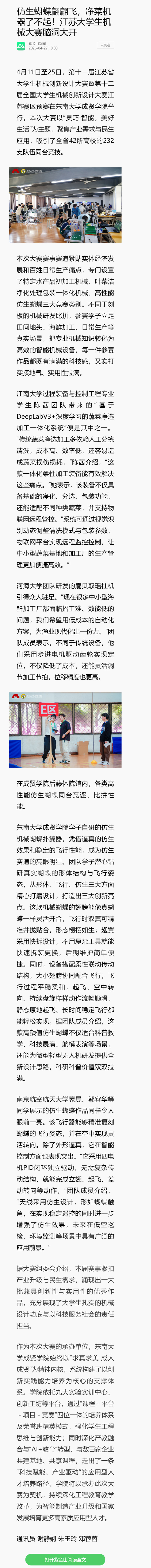 【南京日报 紫金山新闻】仿生蝴蝶翩翩飞,净菜机器了不起!江苏大学生机械大赛脑洞大开